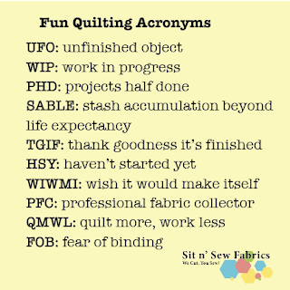 The quilting world is packed with acronyms...HST, WIP, FOB...