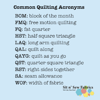 Do you know what they all mean? We've compiled a handy guide of some of the more common quilting acronyms for your reference.