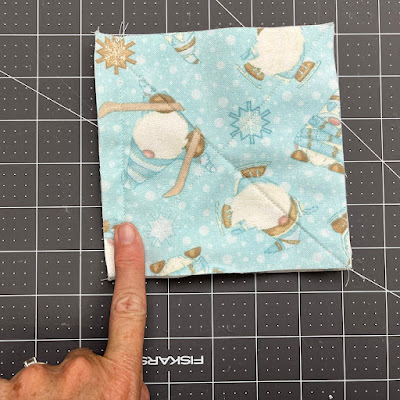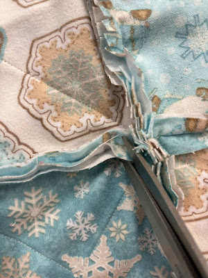 When you sew the stitched squares together, use a 1/2" seam allowance - this creates room for the fringe.