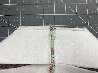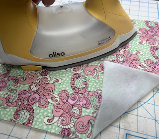 1. Fuse the fusible fleece square to the wrong side of the outer fabric square.
